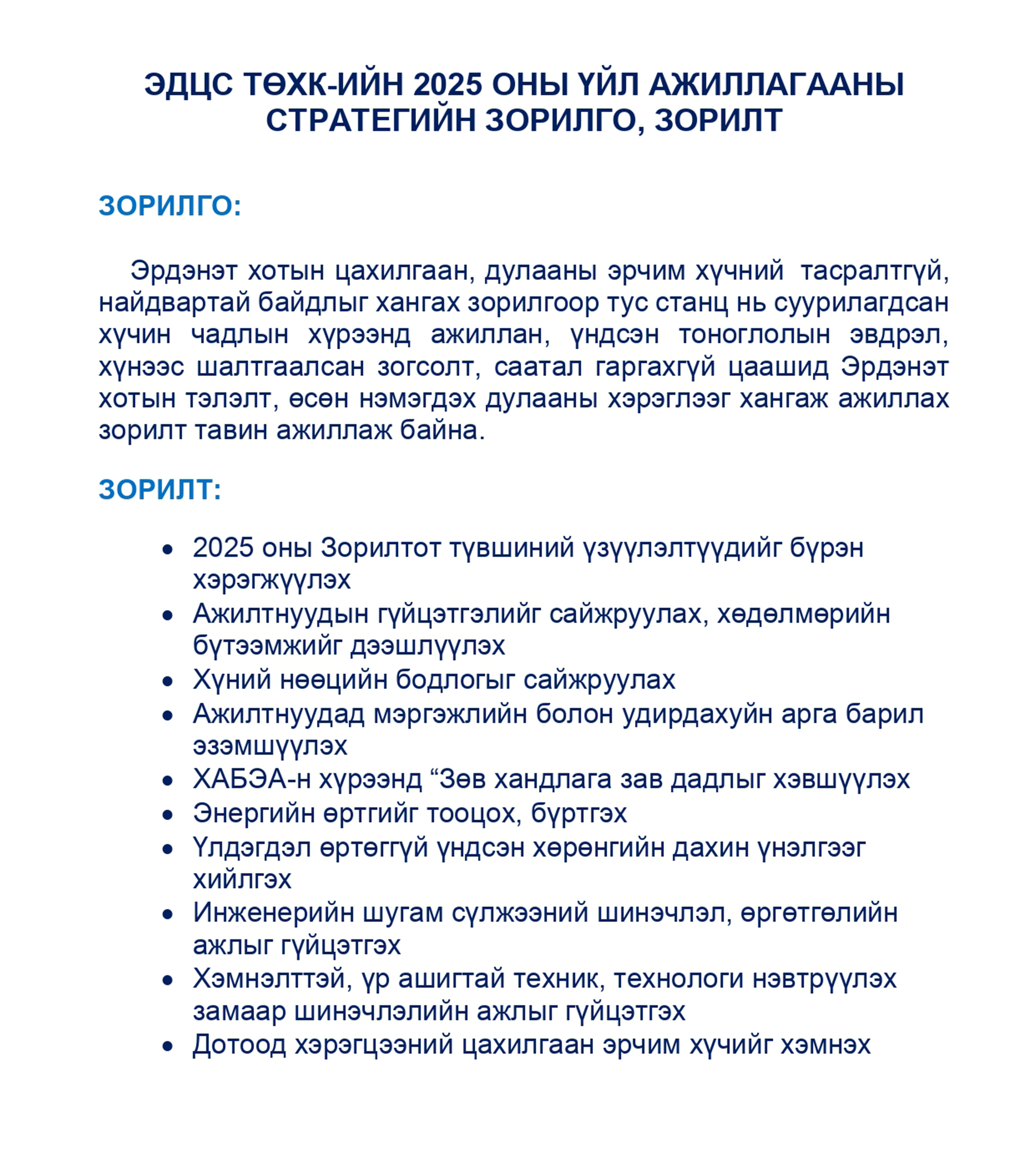 8.2.1 Үйл ажилагааны стратегийн зорилго, зорилт